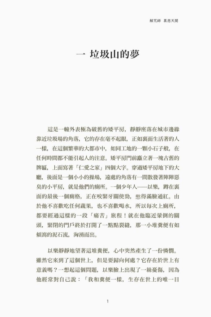 在一個被罪惡與絕望籠罩的「垃圾山」世界,一場關乎靈魂救贖的戰役悄然展開。故事主角是一位13歲的孤兒——以樂,從小備受欺凌、內心充滿恐懼與不安,他的靈氣意外暫存於雷虎客棧的傑老闆體內,並在靈鴿的引導下,逐步揭開自己作為「解咒師」以及「天選之人」的命定。